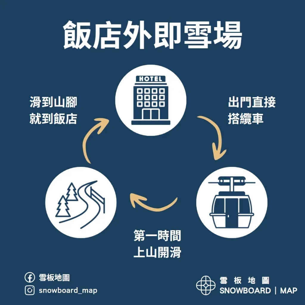 最大的好處就是節省交通時間,輕鬆來回雪場及住宿地點,也可以避免因為來往雪場的交通狀況產生的不確定性 (例如路面結冰車子開不上去)