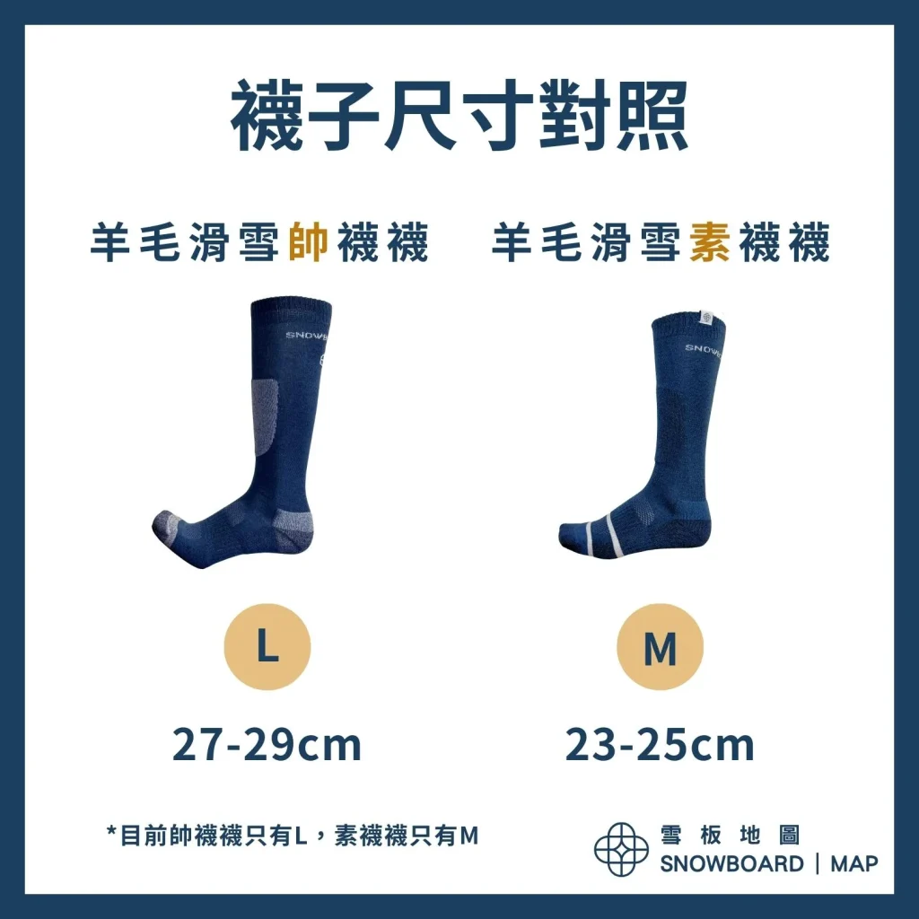 滑雪最辛苦的就是你的雙腳,雪靴鞋筒很高,又硬又緊,你需要一雙及膝的長襪,同時具備良好保暖及控濕的能力,柔軟舒適、能抑制臭味 (當你去一趟滑雪,可能三四天都沒辦法洗襪子),美麗諾羊毛是滑雪襪材質最佳的選擇